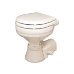 [κωδικός JABSCO: 37045-3092] Compact τύπος. Αυτή η τουαλέτα έχει αθόρυβη λειτουργία και σύστημα ελέγχου της στάθμης του νερού μέσα στην λεκάνη. Ένας διακόπτης ενεργοποιεί ταυτόχρονα την παροχή νερού και την αντλία macerator για την διάλυση των λυμάτων. Ένας ακόμη διακόπτης δίνει την δυνατότητα για ανεξάρτητο έλεγχο στην παροχή νερού προς την λεκάνη και της αντλίας ώστε να ρυθμίζεται ανεξάρτητα η στάθμη του νερού. Αυτό επιτρέπει την ελαχιστοποίηση της χρήσης του νερού όταν απαιτείται όπως και την πλήρη εκκένωση της τουαλέτας σε περίπτωση θαλασσοταραχής. Παρέχεται με βαλβίδα και σιφόνι για εφαρμογή σε οποιαδήποτε πρεσσοστατική αντλία νερού με ροή 13,5 lpm και μεγαλύτερη. Παρέχεται αντάπτορας για σύνδεση 8mm στην εξαγωγή. Μοτέρ και διακόπτες πιστοποιημένοι κατά ISO 8846 MARINE και U.S.C.G. Regulation 183.410.